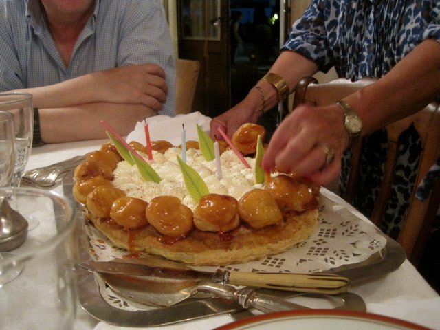 The description of the cake seemed a bit too frilly for me, and as if perhaps too much would be going on at once. In reality, that's the fun of the cake! It is jovial and makes the eater feel a bit younger, plucking off the cream puffs and eating it. The perfect birthday cake! But the taste is sophisticated. Not overly sweet, the pâte à choux crust is flaky and buttery. The sweetness comes from the airy and light cream.